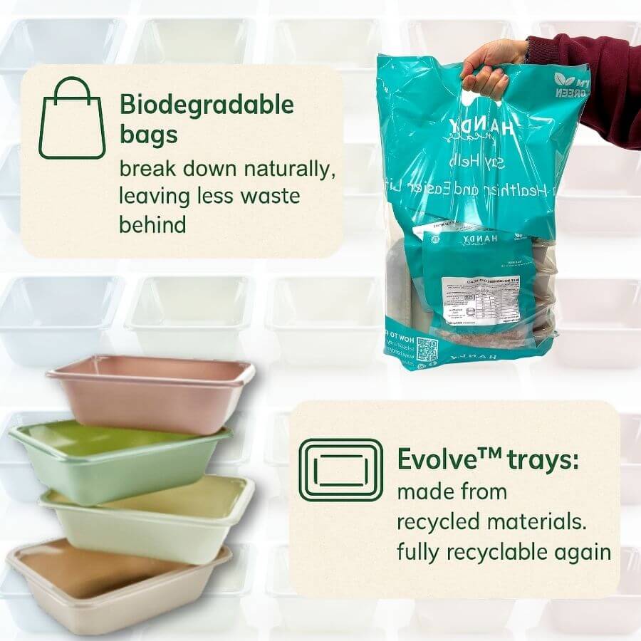 We prioritise environmentally responsible packaging. Our meal trays are made from recycled materials and can be recycled again, while all delivery packaging is biodegradable — helping reduce single-use plastic and environmental impact, one meal at a time.